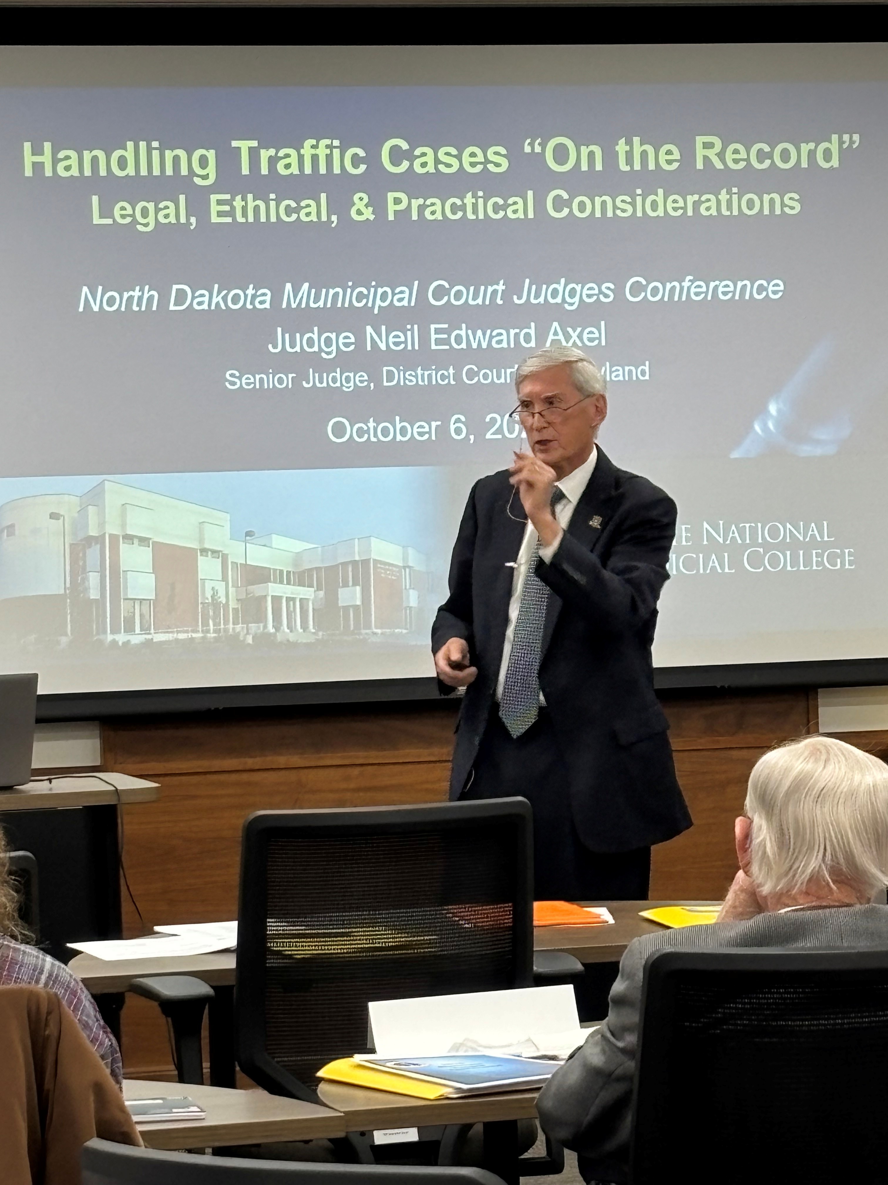 Municipal judges from around the state of North Dakota gathered in Bismarck for their annual fall seminar on October 6th. The seminar this year covered a number of topics, including a deep dive on Canon 2 of Judicial Ethics, which focused on the duty of impartiality as a judge. Judges also attended sessions on traffic cases, trial and sentencing, and discussed changes to the municipal code that occured in the 2025 Legislative session.