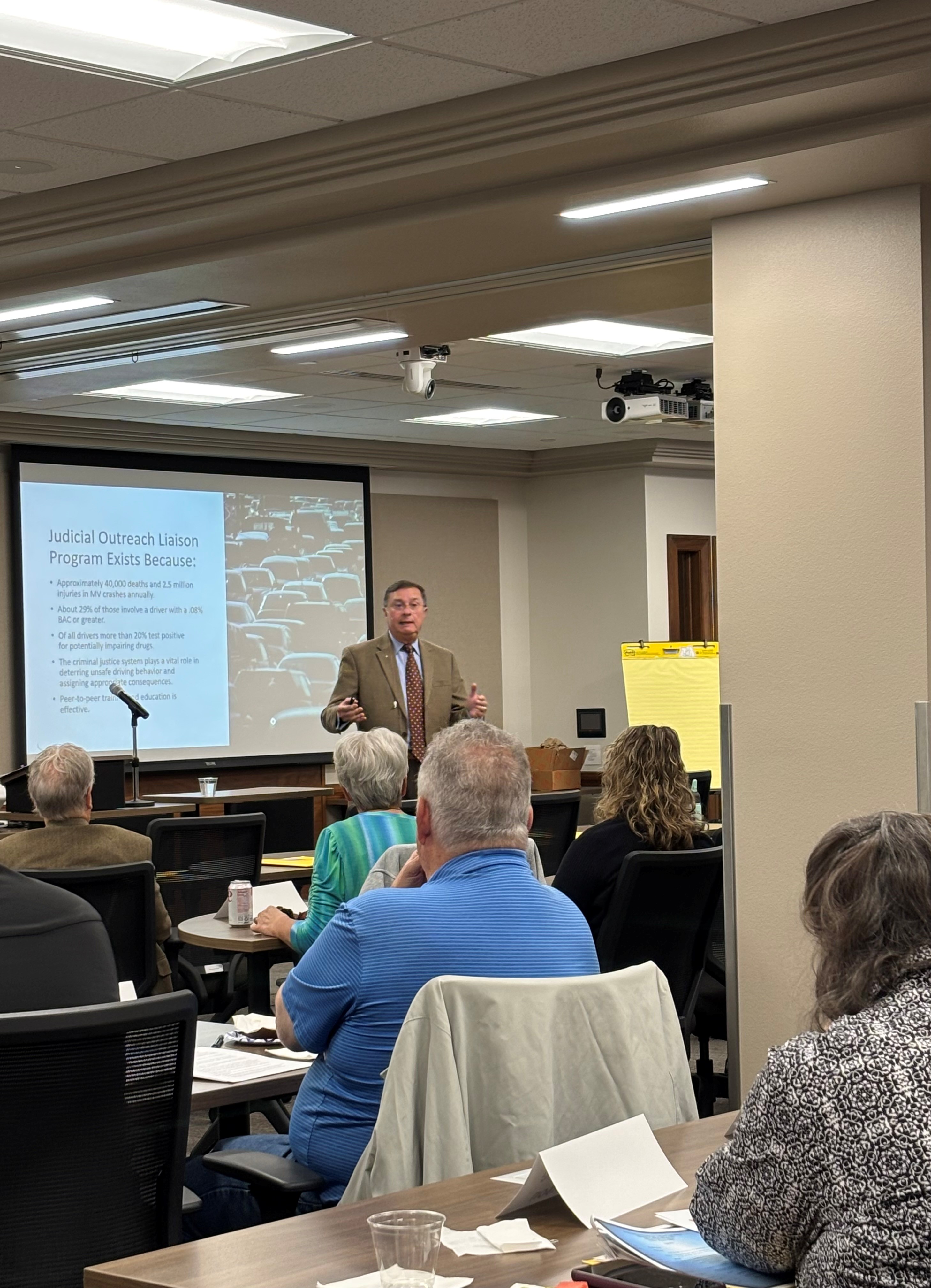 Above, Judge Donald Parish (Retired), a Judicial Outreach Liaison for the State of Tennessee, spoke to attendees about trials and sentencing. Judge John Grinsteiner (Retired), the North Dakota Judicial Outreach Liaison also presented.