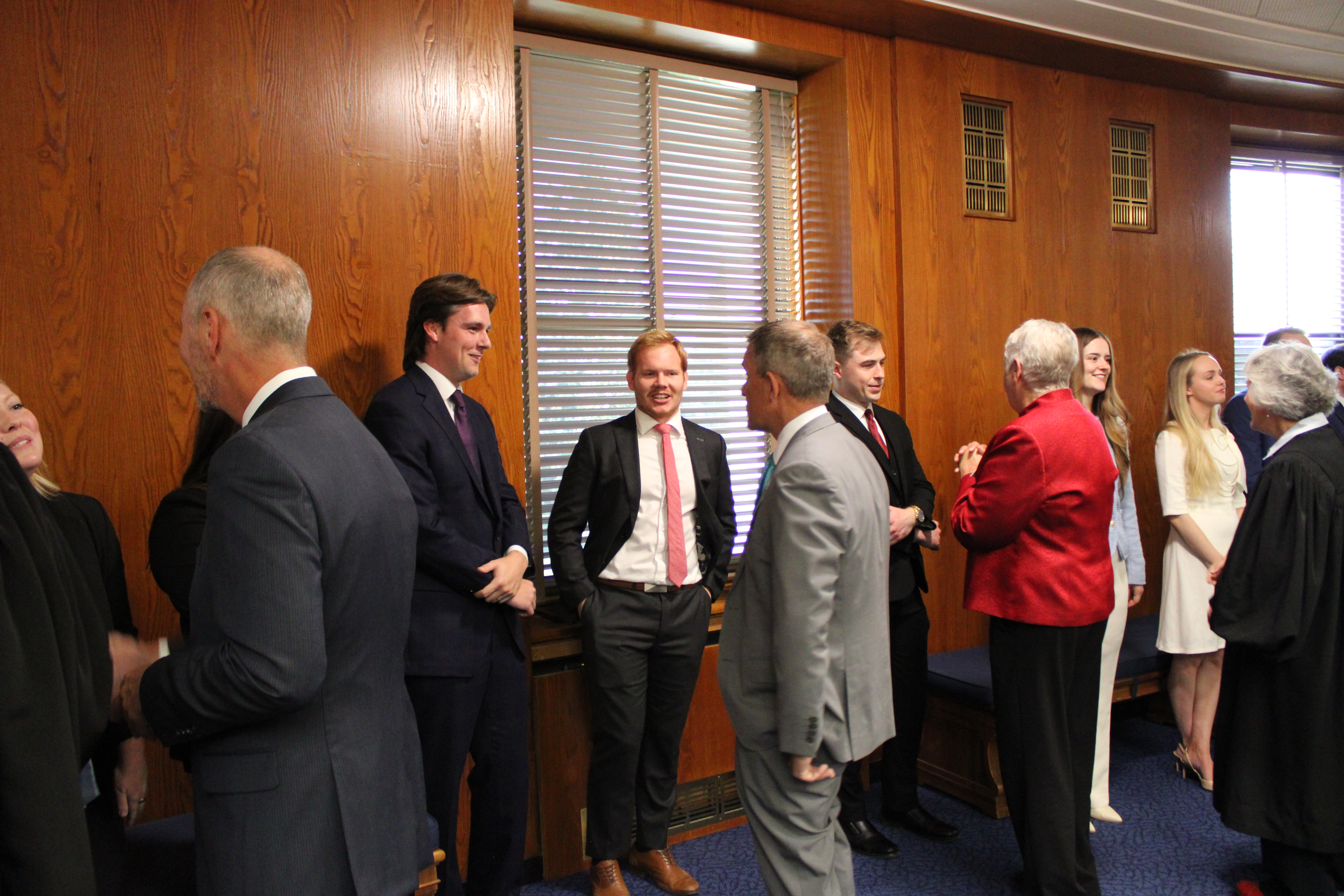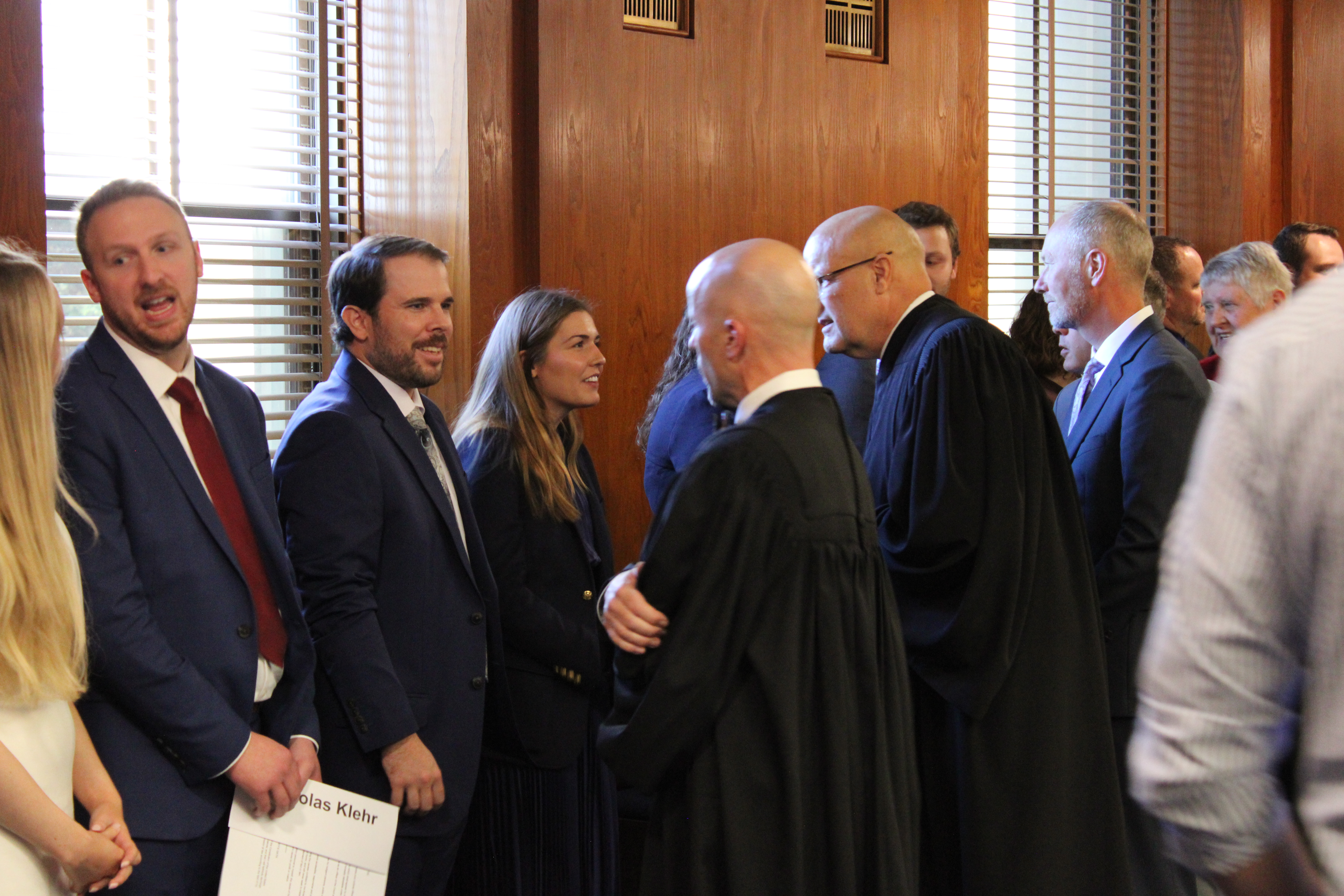 Left to Right, Justices Tufte and Bahr visit with attorneys in the receiving line at the conclusion of the ceremony. Also pictured is SBAND Executive Director Tony Weiler, to the right of Justice Bahr.